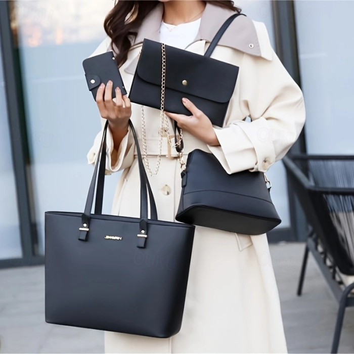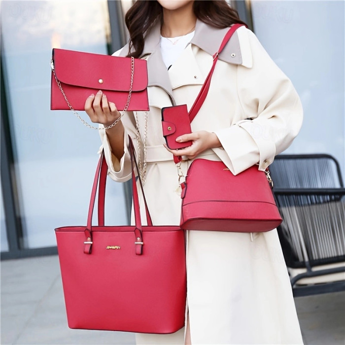 4PCS/Set Women Lady Fashion Leather Handbag Shoulder Bag